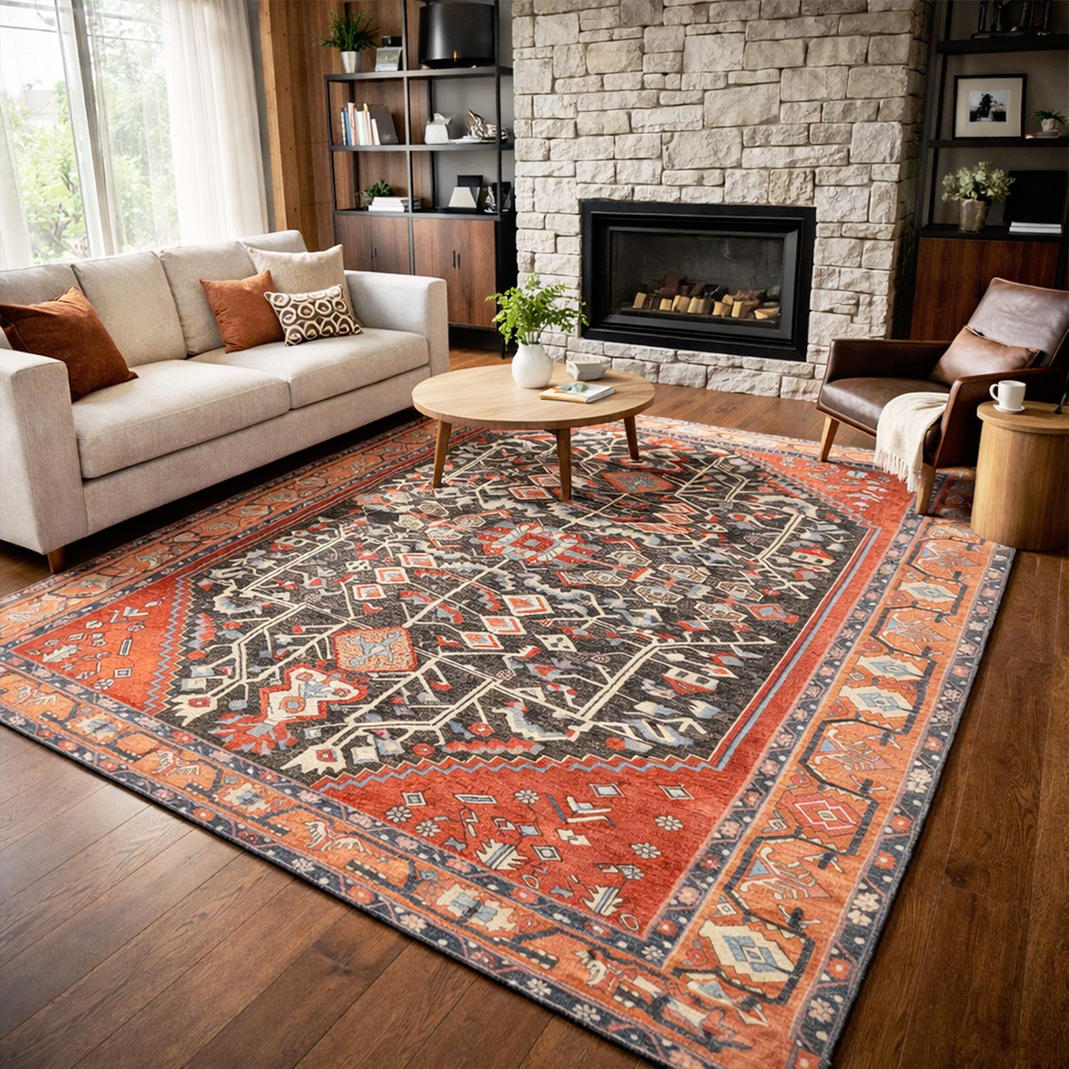 Apportez une touche d'élégance et de durabilité à votre salon avec ce tapis égyptien imperméable.